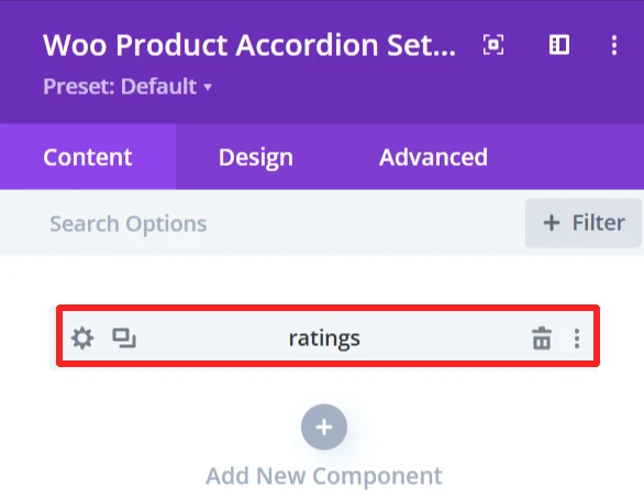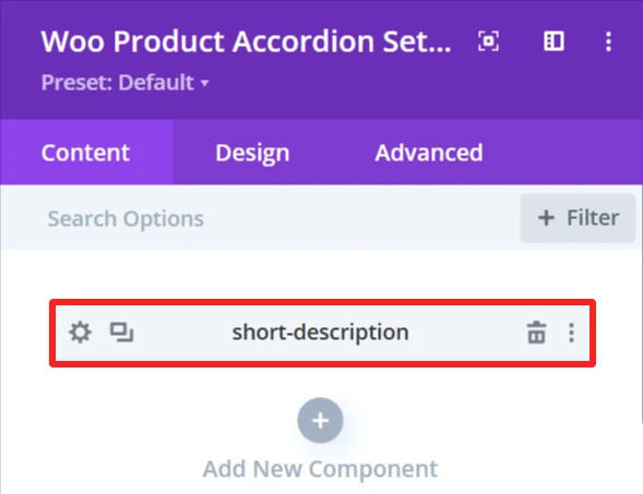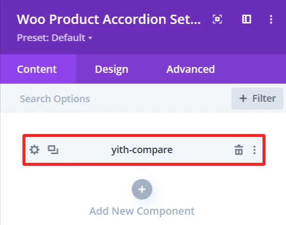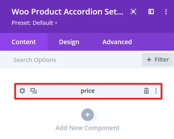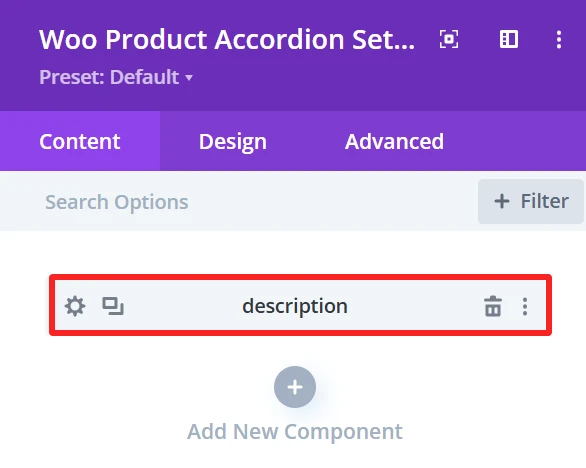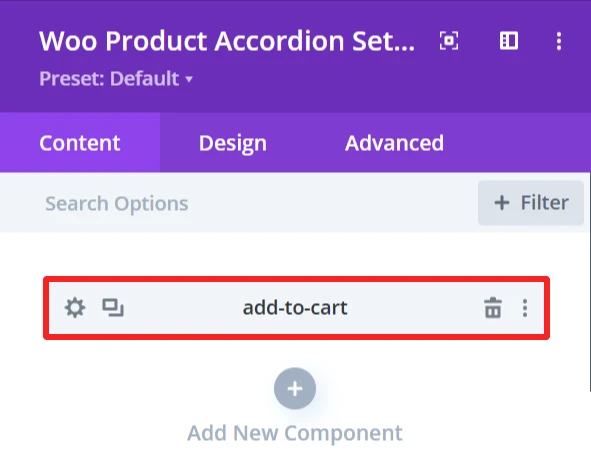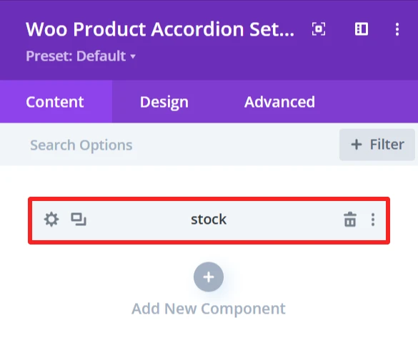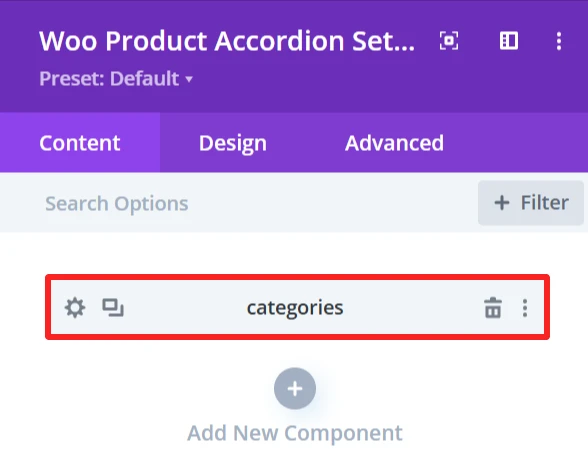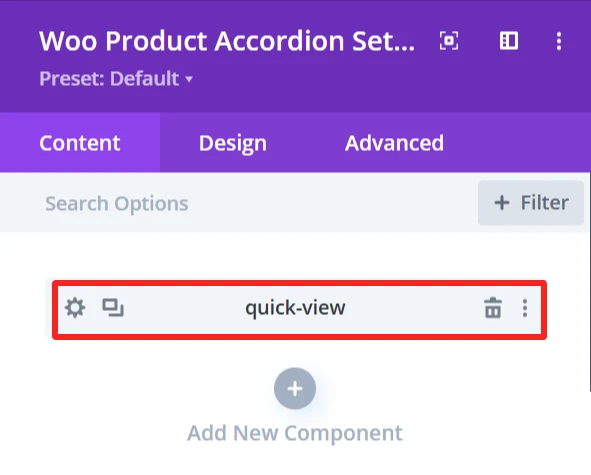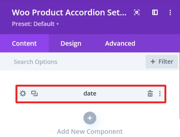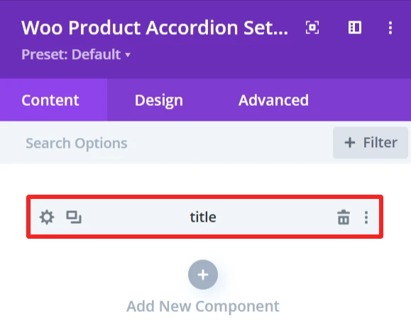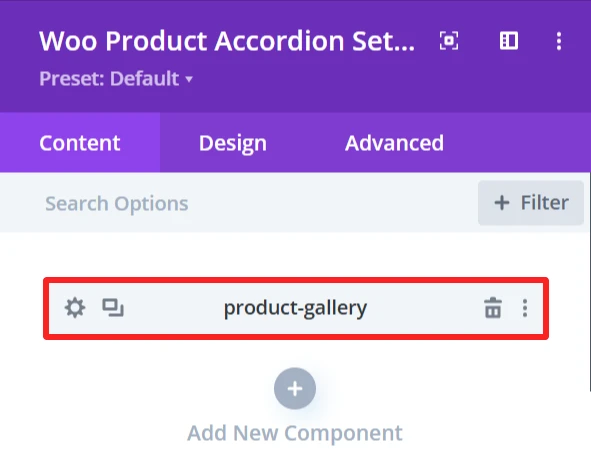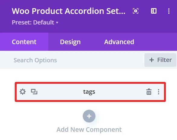 The Design tab in the Woo Product Accordion module lets you customize how the product accordion appears on your site. You can adjust the look and feel of the accordion and its items.