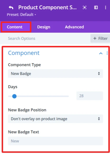 Days: Use the slide to configure the number of days for which the product is considered new. This sets the duration the ”New” badge will be displayed according to the product release date.