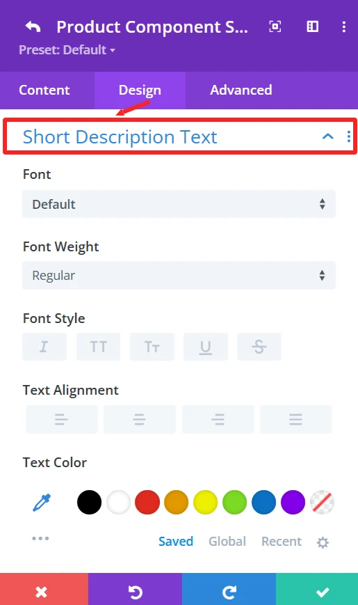 Short Description Text: Set font size, text color, letter spacing, and text shadow.