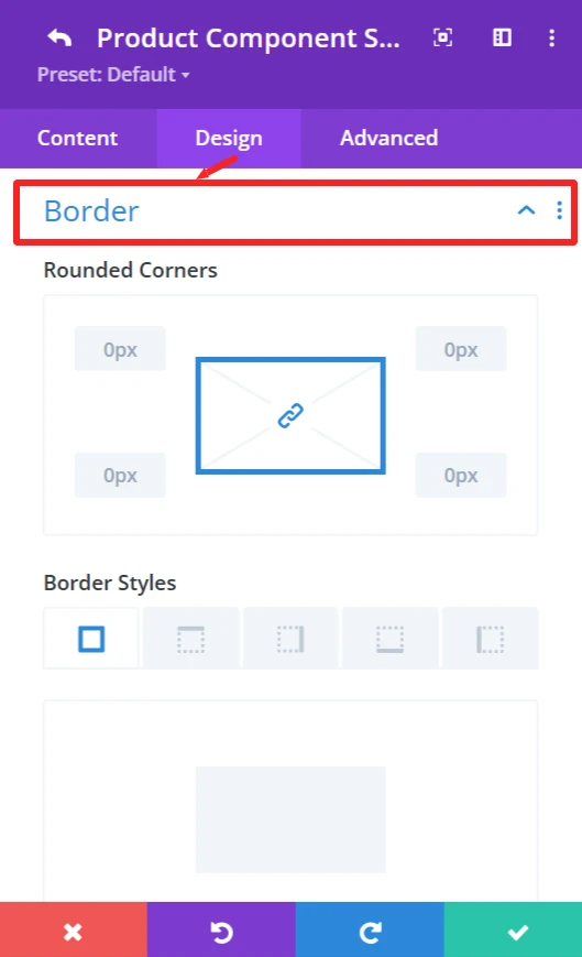 Border feature: Custom Border of the products accordion, like broader color, width, and styles, and rounded corners.
