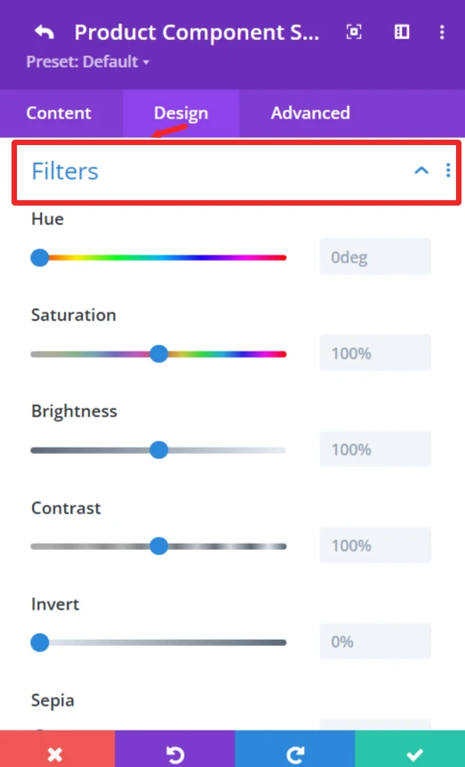 Filters Effect: Hue, brightness, and opacity sliders to make the accordion more appealing.