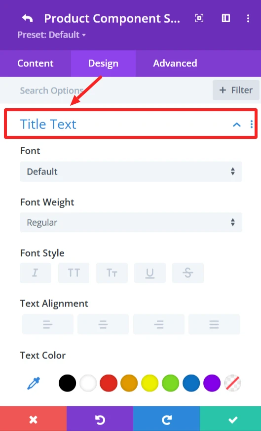 Select Title Tag for product (H1, H2, H3, etc.). Also, the background of the title can be changed using the background feature.