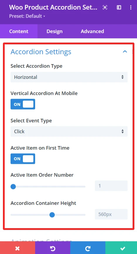 - Set the Product Accordion Settings.
