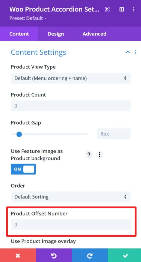 Customization options: This offset can be customized to jump over any certain number of products and set the starting point of the accordion display.