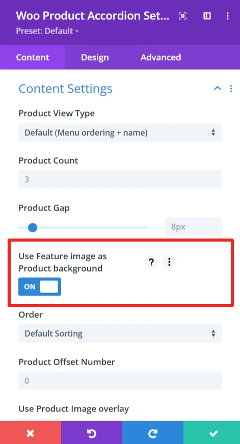 Customization Options: You can turn ON/OFF to set or not to set the product featured image as the background for an accordion item according to your personal preferences.