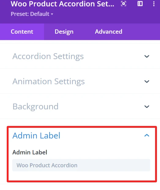 The Admin Label is suitable for locating/managing the product accordion in the WordPress admin panel. Administrators/developers are able to find/grab the accordion component faster than other elements.