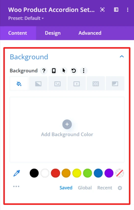 Customize the background display of the WooCommerce product accordion by setting a background color, image, or style. It allows you to customize the accordion design so that it fits on your website and matches your site’s look.