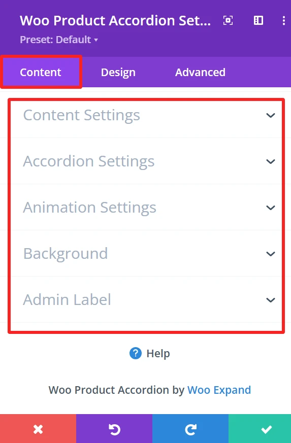 Content Tab – Woo Product Accordion Settings #