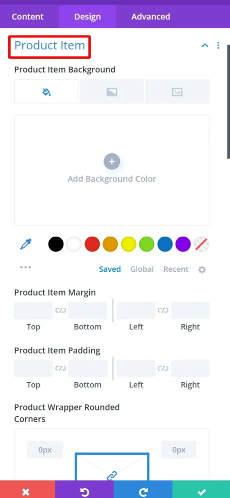 Product Item: it is used for customization product items background, margin, padding, product wrapper rounded corners, and its broader style, width, color also used to give box shadow in product items.