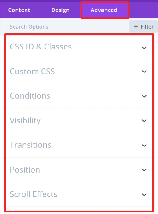 The Advanced section of the Woo Category Accordion module offers more customization for those who’d like to have more control over the behaviour and visibility of the category accordion, as well as how the user will interact with it. These are mostly for those who know a bit of web development or who want to make fine-tuned adjustments. It offers options such as adding CSS IDs or classes, using its own custom CSS for design adjustments, and setting conditions for when the category accordion is displayed.