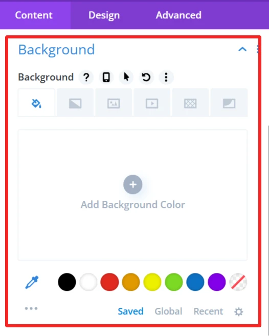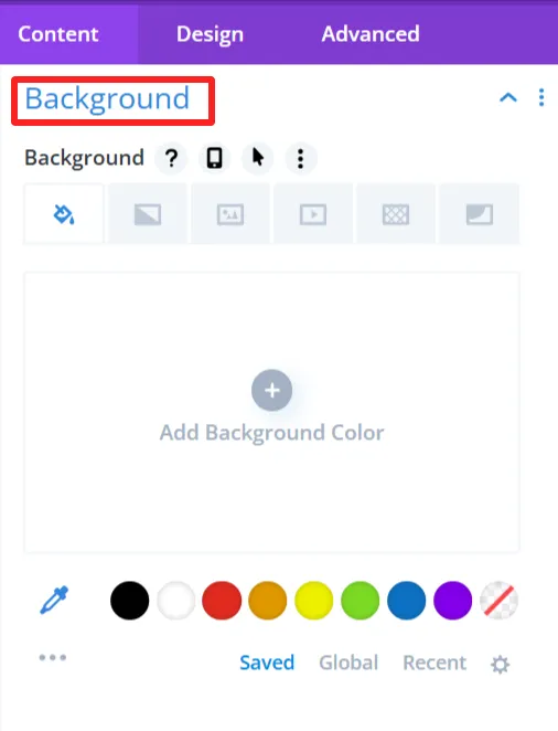 Background (This feature is available in the content tab of all child components and works the  same.)