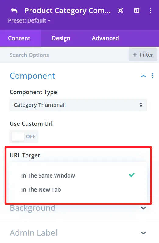 You can choose “In The Same Window” or “In The New Tab” as the URL Target. This is where the link will be opened upon clicking.