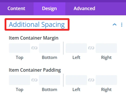 Additional Spacing: This is used to give full control of the margin and padding in your item container. which improves the look and balance of the category accordion.