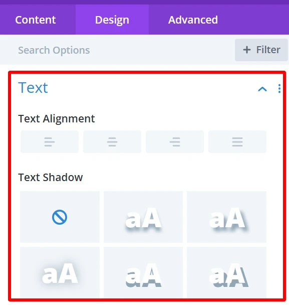 Text: It is used for customizing text alignment and text shadow within the category accordion.