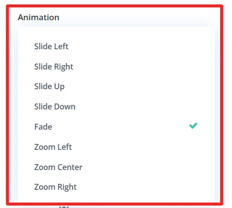Animation: This contains many animation effects. You can select from the  dropdown: