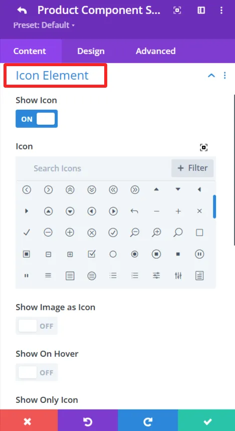 Icon Element: The Icon Element provides the ability to customize and show icon with the custom text.