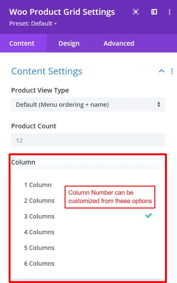 Functionality: The column setting specifies how many vertical columns are used to display the items: More columns make for a smaller product, and less columns create a larger product.