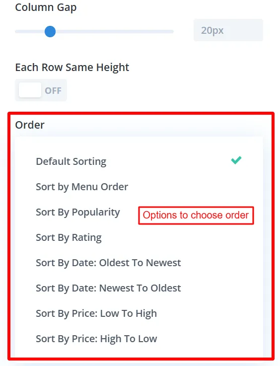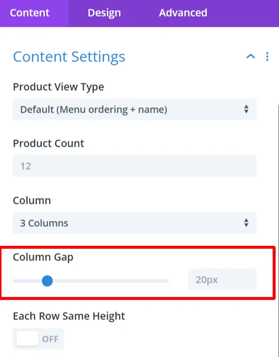 Functionality: Column gap controls setting the space between product cards for better separation and a more organized layout.