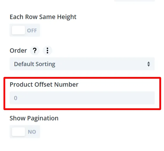 Functionality: Allows skipping a few products from the beginning of the grid. For instance, if you set the offset to 3, the first three products would not be displayed.