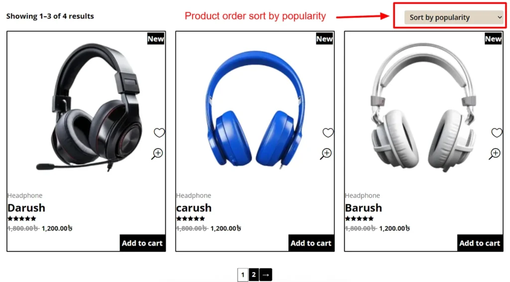 Functionality: This feature enables products to be shown based on one of several criteria, like sort by rating, sort by popularity, etc.