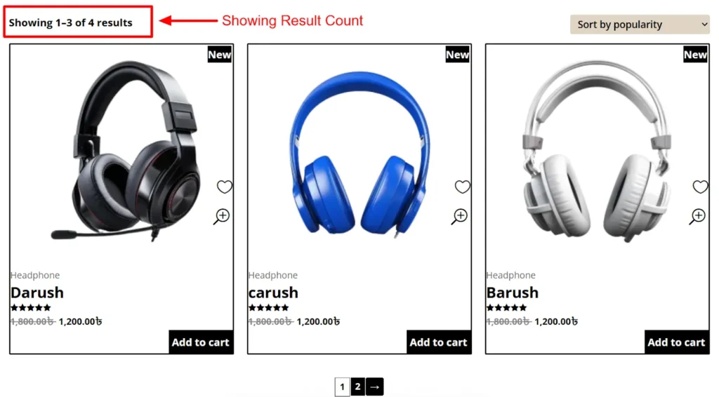 Result Count: it is used for customization of result count background, margin, padding, rounded corners, and its broader style, width, color, also used to give box shadow in result count.