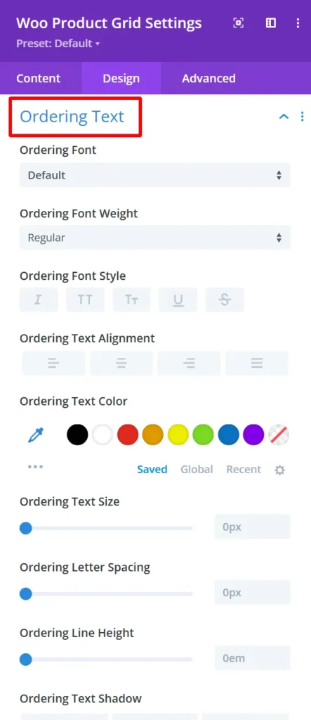 Ordering Text: You can use this option to change the font, size, color, and style of the text used for ordering.