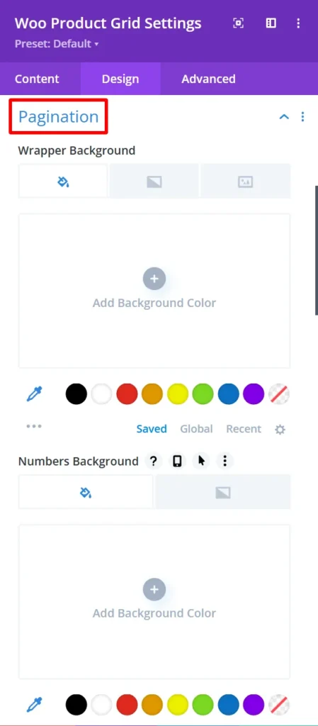 Pagination: It is used for customization of pagination wrapper background, number background margin, padding, rounded corners, and its broader style, width, and color, also used to give box shadow in pagination.