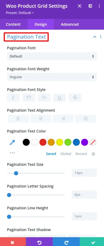 Pagination Text: Customize text (font, size, color, style) used in pagination