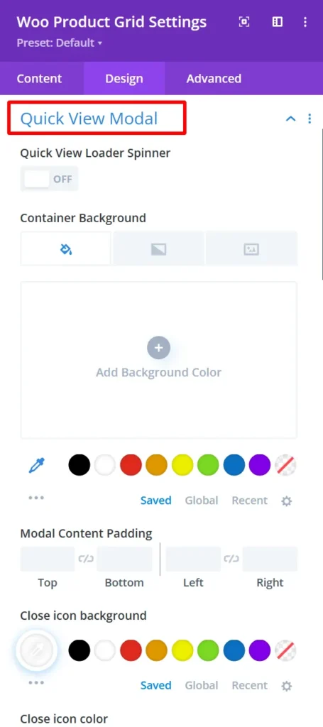 Quick View Modal: This is used to design how users will see a quick view pop-up in the event that they click to view a product without leaving the page. You can style this modal however you really want to match your theme!