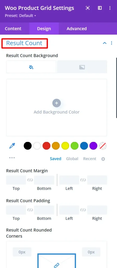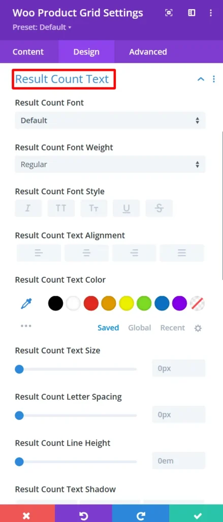 Result Count Text: This gives you the option to change the font, size, color, and font style of the text used in the result count.