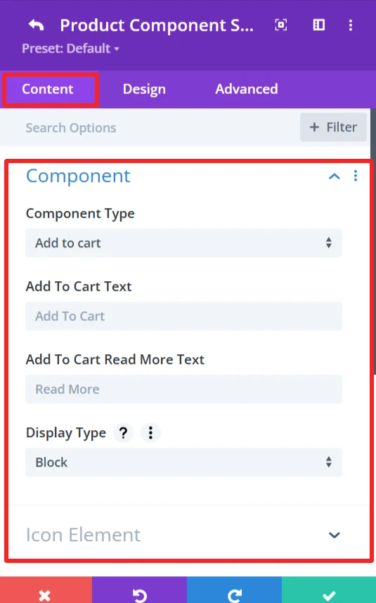 Icon Element: The Icon Element provides the ability to customize and show icon with the add to cart text.