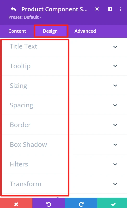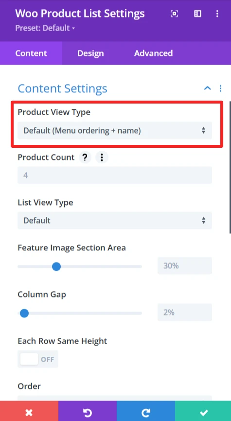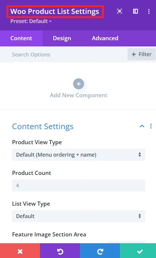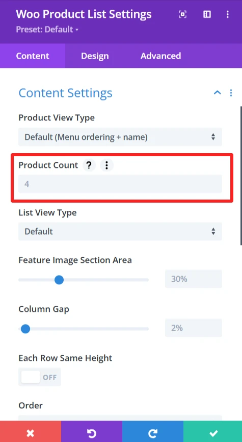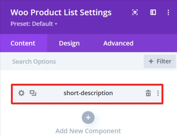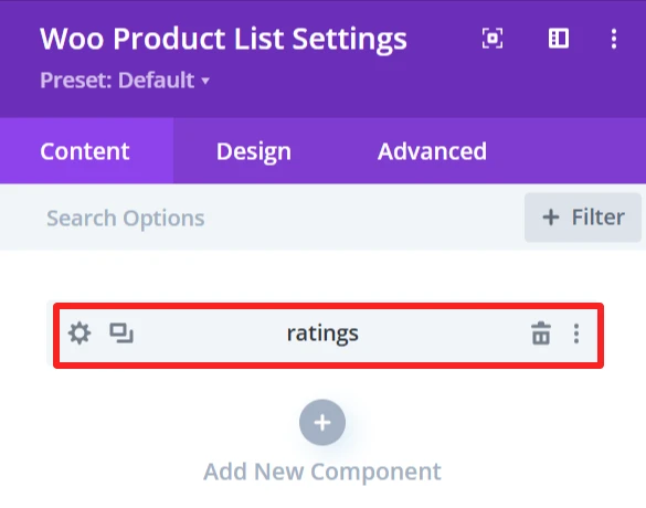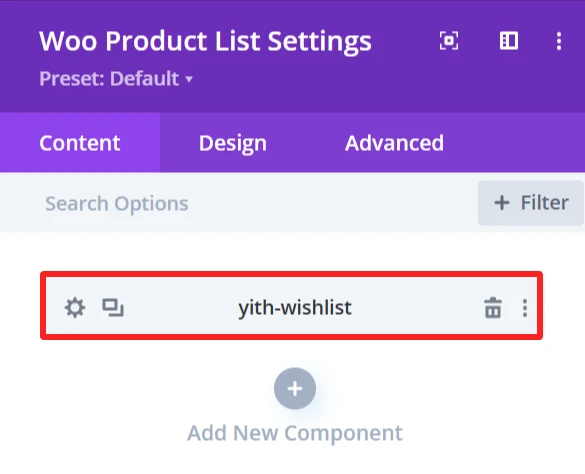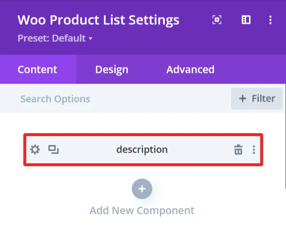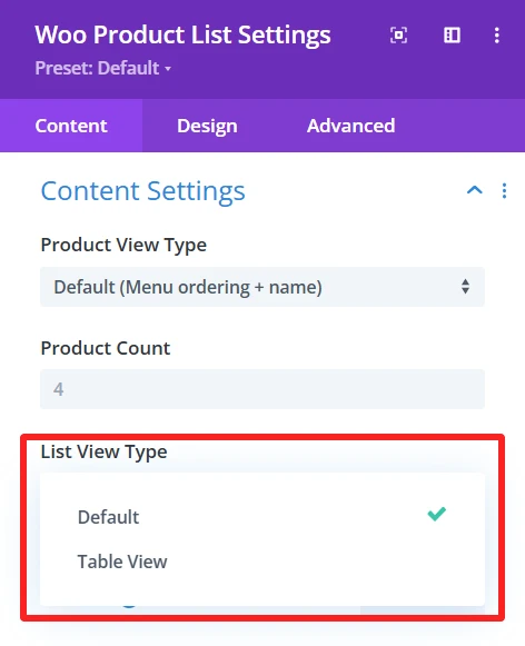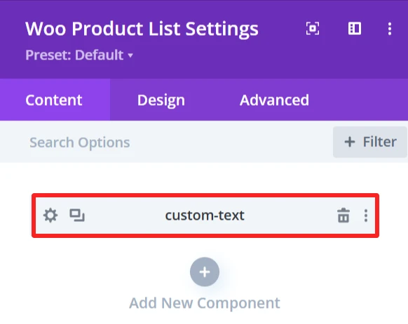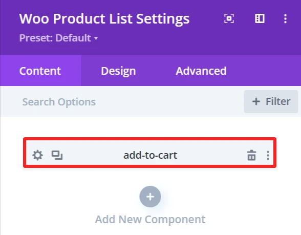 The Design tab in the Woo Product List module lets you customize how the product list appears on your site. You can adjust the look and feel of the list and its items.
