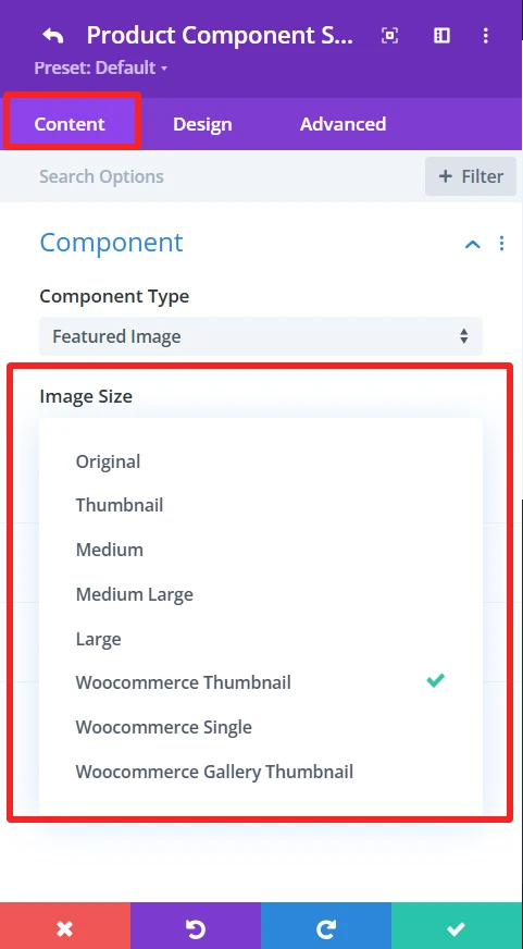 Image Size (small, medium, large, custom size). Also, the background of the featured-image can be changed using the background feature.