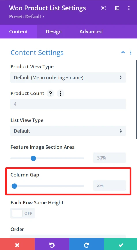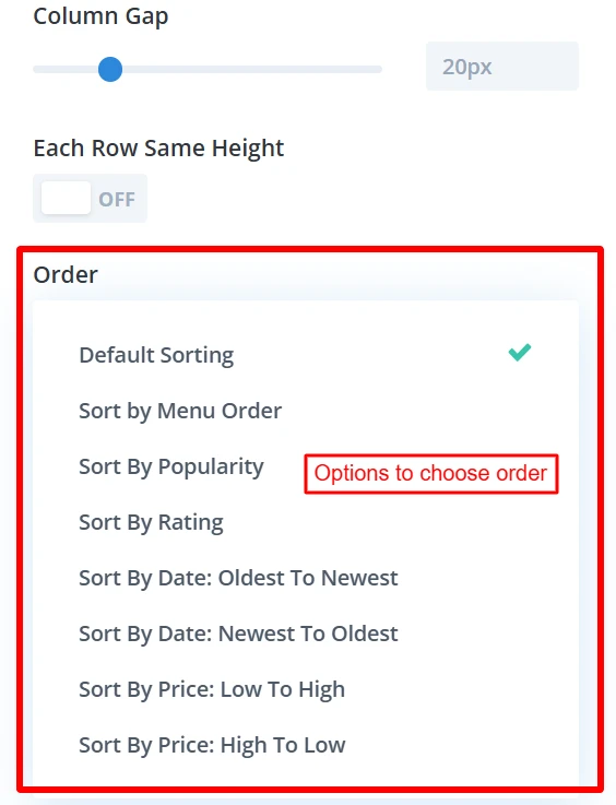 Functionality: column gap controls setting the space between product cards for better separation and a more organized layout.