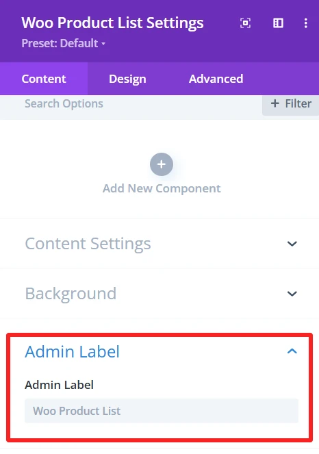 The Admin Label is suitable for locating/managing the product list in the WordPress admin panel. Administrators/developers can find/grab the list component faster than other elements.