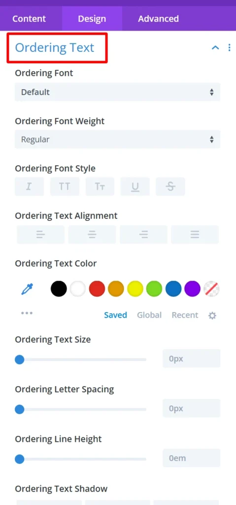 Ordering Text: You can use this option to change the font, size, color, and the style of the text used for ordering.