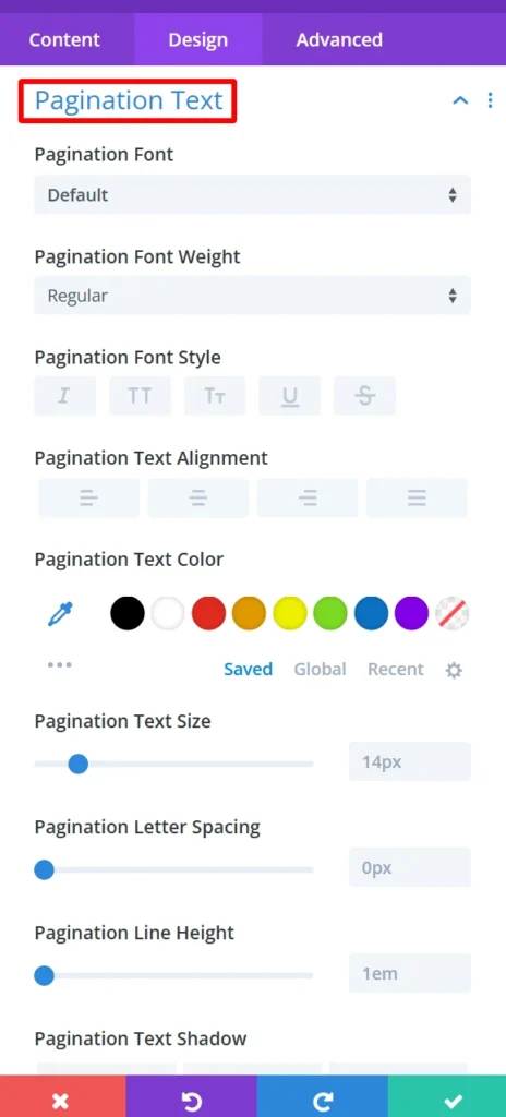 Pagination Text: Customize text (font, size, color, style) used in pagination.