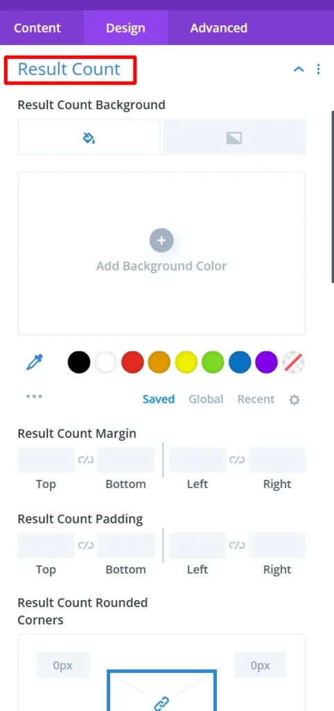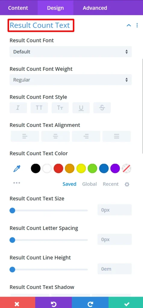 Result Count Text: This gives you the option to change the font, size, color and font style of the text used in the result count.