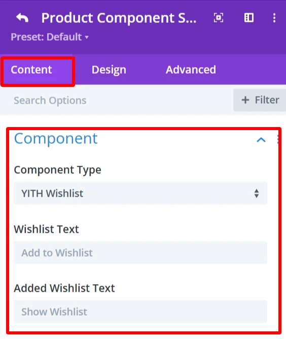 Icon Element: The Icon Element provides the ability to customize and show icon with the wishlist text.