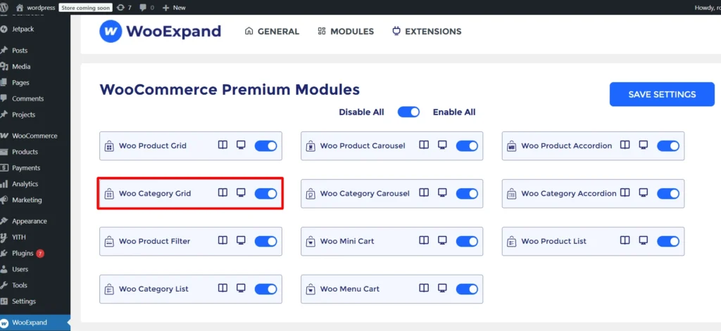 - Check if the Category Grid Module is enabled or not from the WooExpand settings.