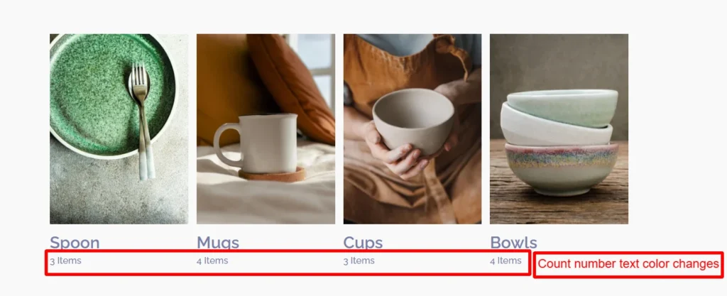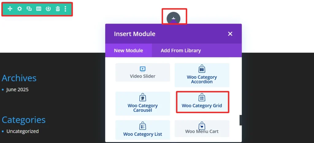 You can display category images, titles, product counts, and even custom hover effects — all styled directly in the Divi Visual Builder.