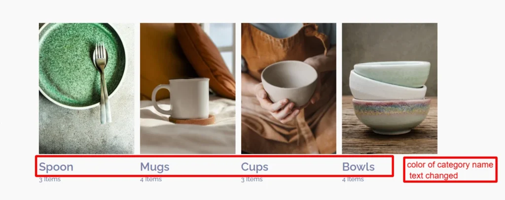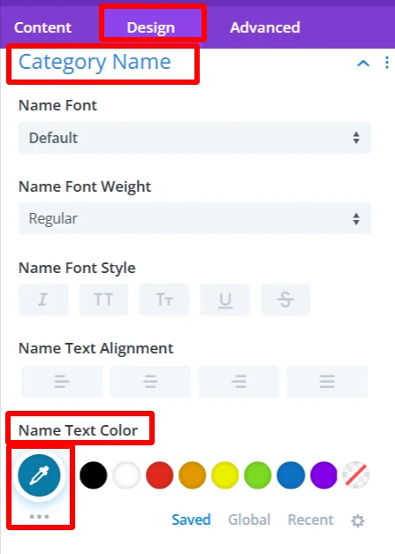 As you can see, the color of the text of category name child component was changed using the design tab of this component.