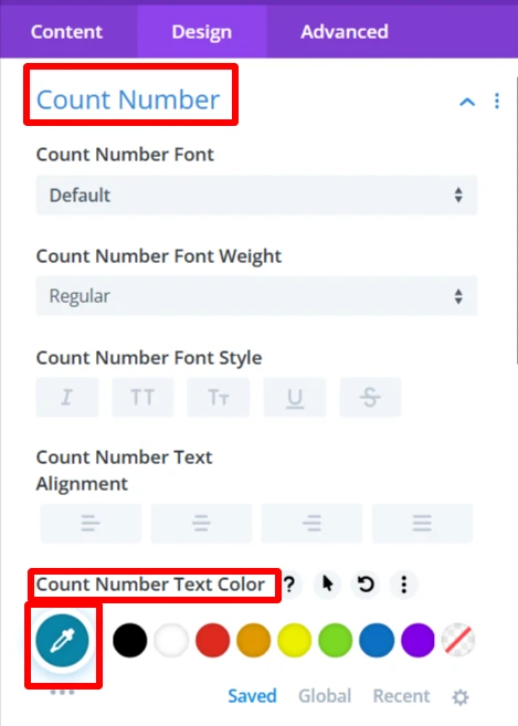 Also, the color of the text of the count number child component was changed using the design tab of this component.